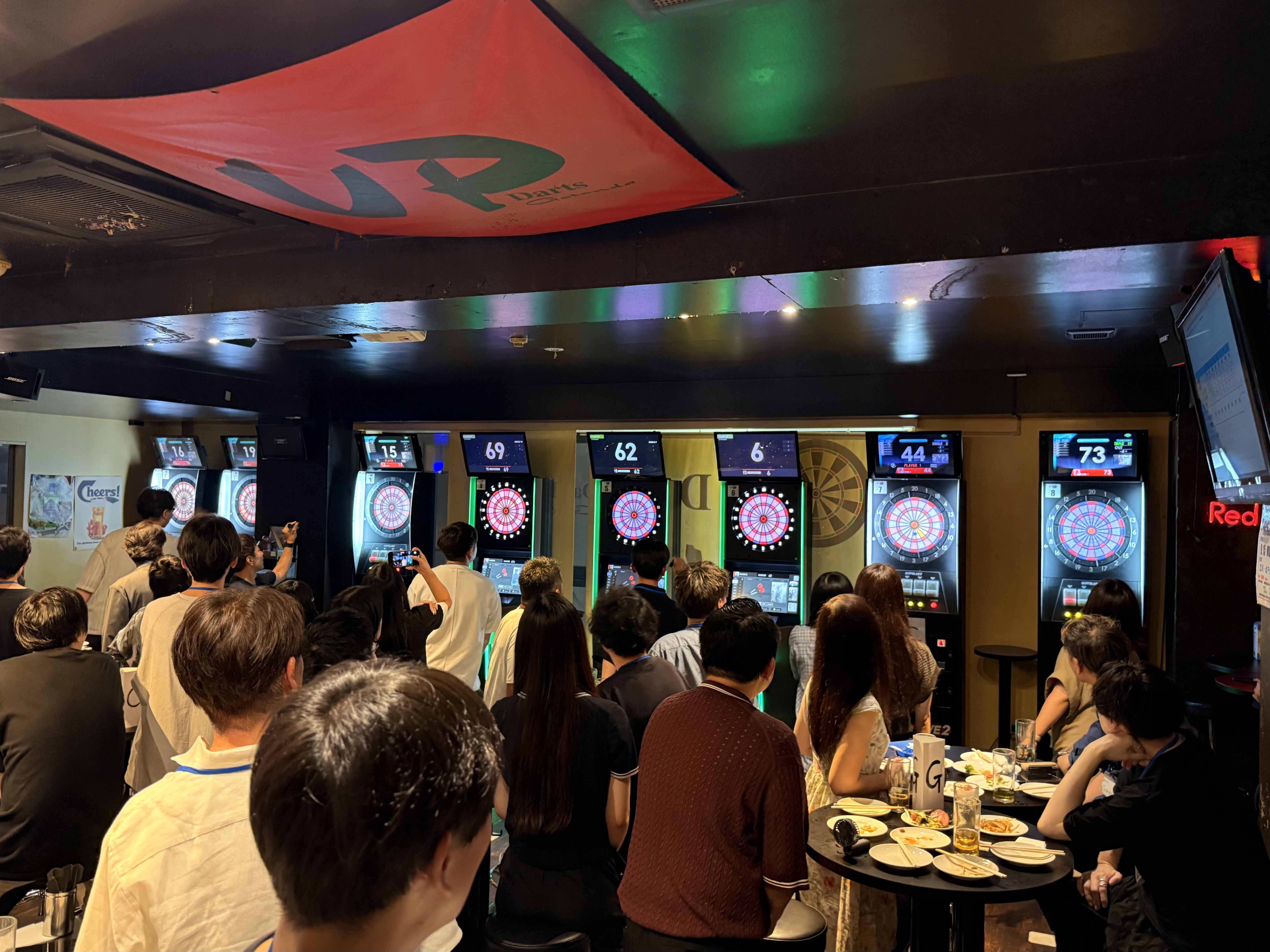 今年は、昨年のイタリアンレストランからガラッと雰囲気を変え、五反田のダーツバーでの開催となりました。